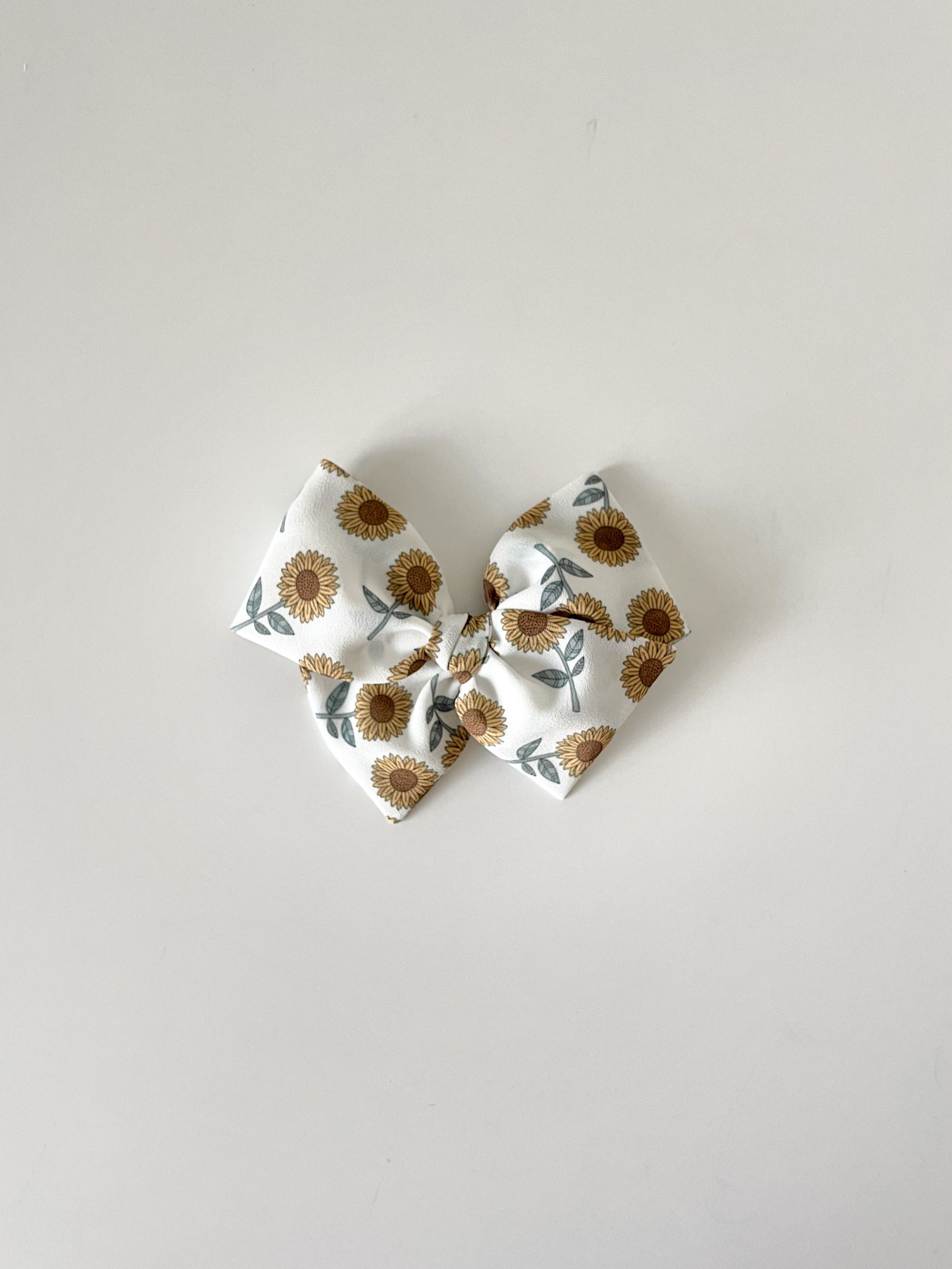 Scattered sunflowers on white background.