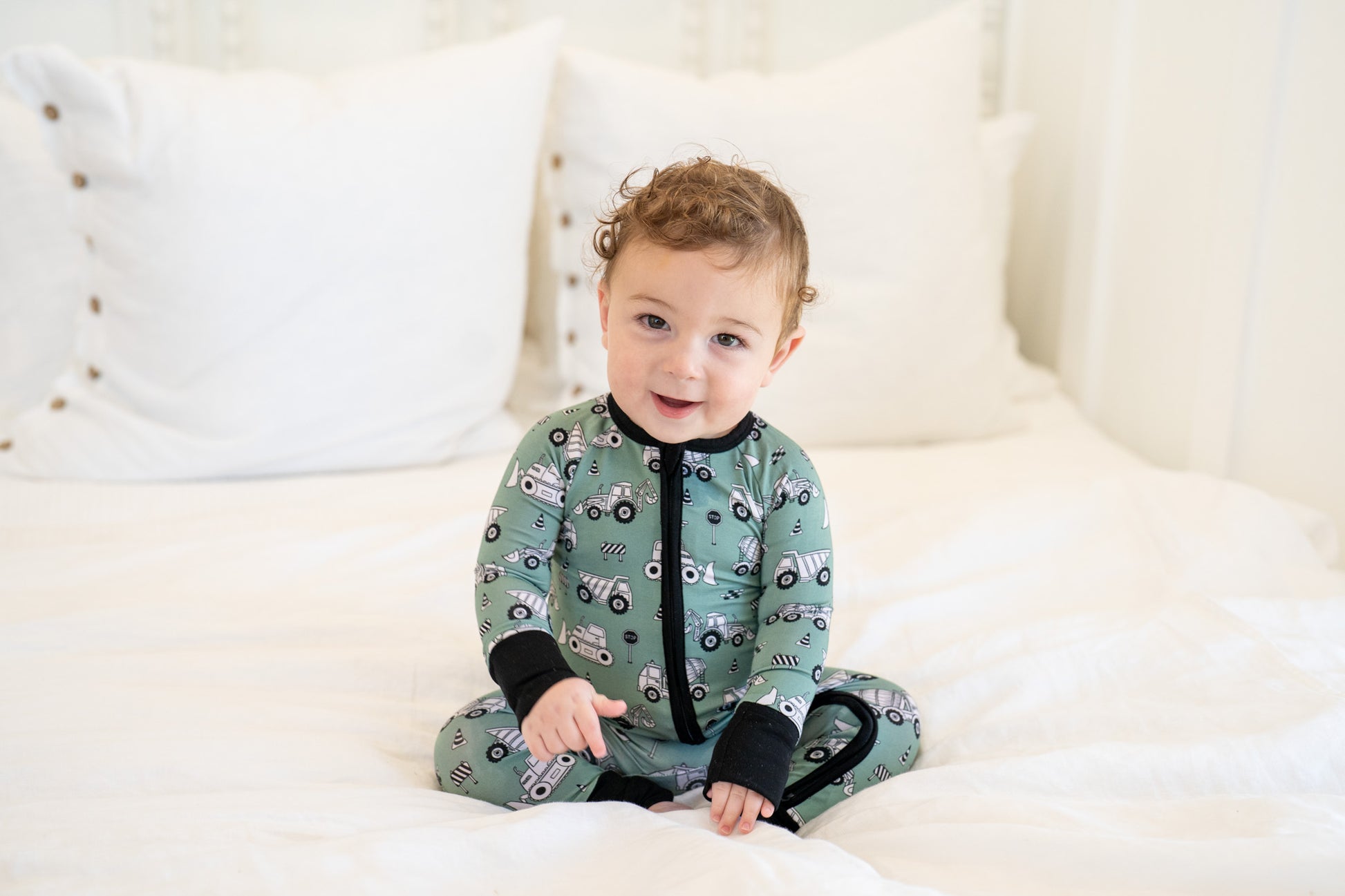 This construction-themed baby onesie is a must-have for parents looking for comfortable baby pajamas, cute baby boy sleepers, or modern neutral baby clothing ๐Ÿšš๐Ÿ’š
