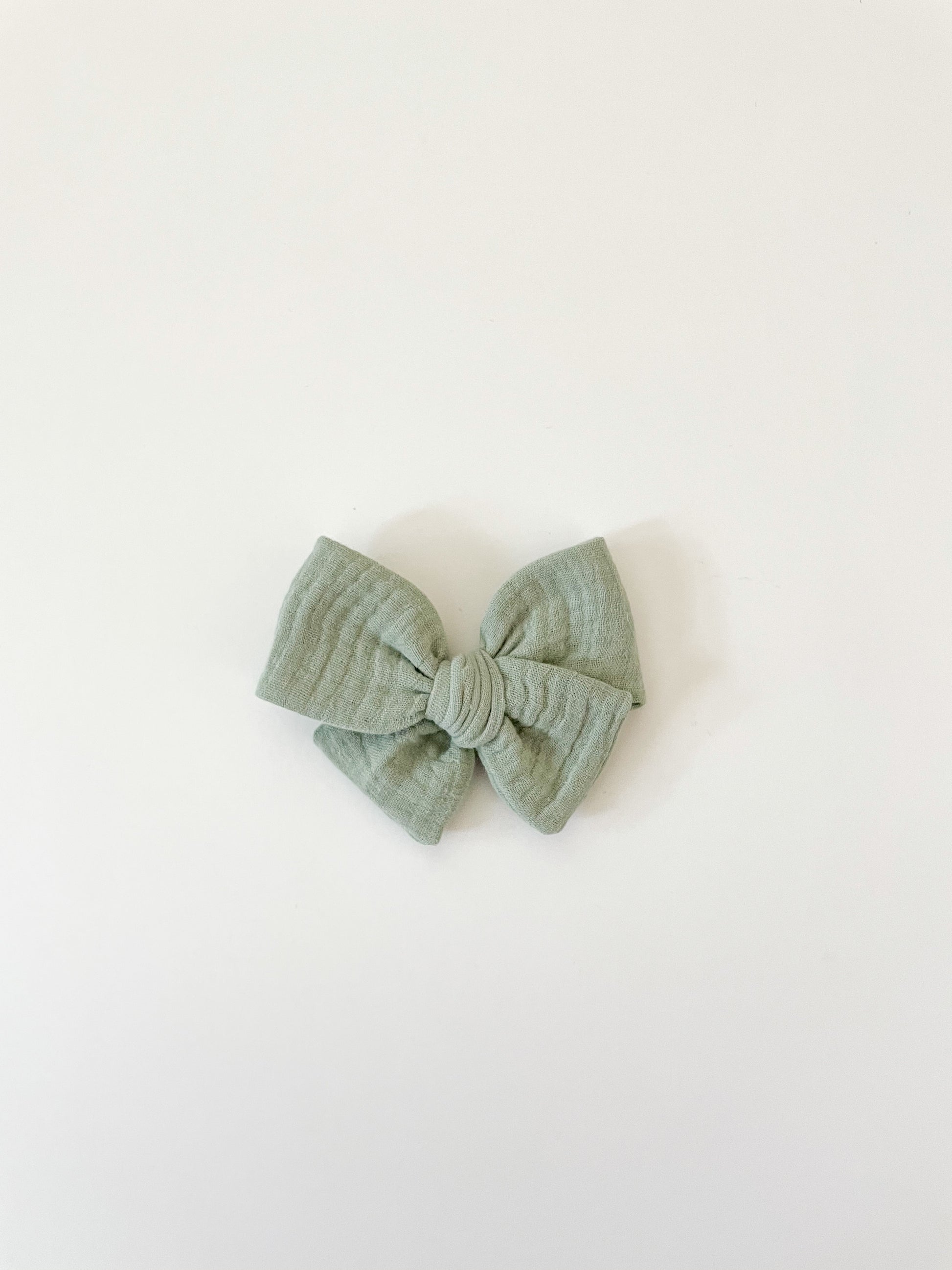 Dusty sage color gauze fabric pinwheel bow
