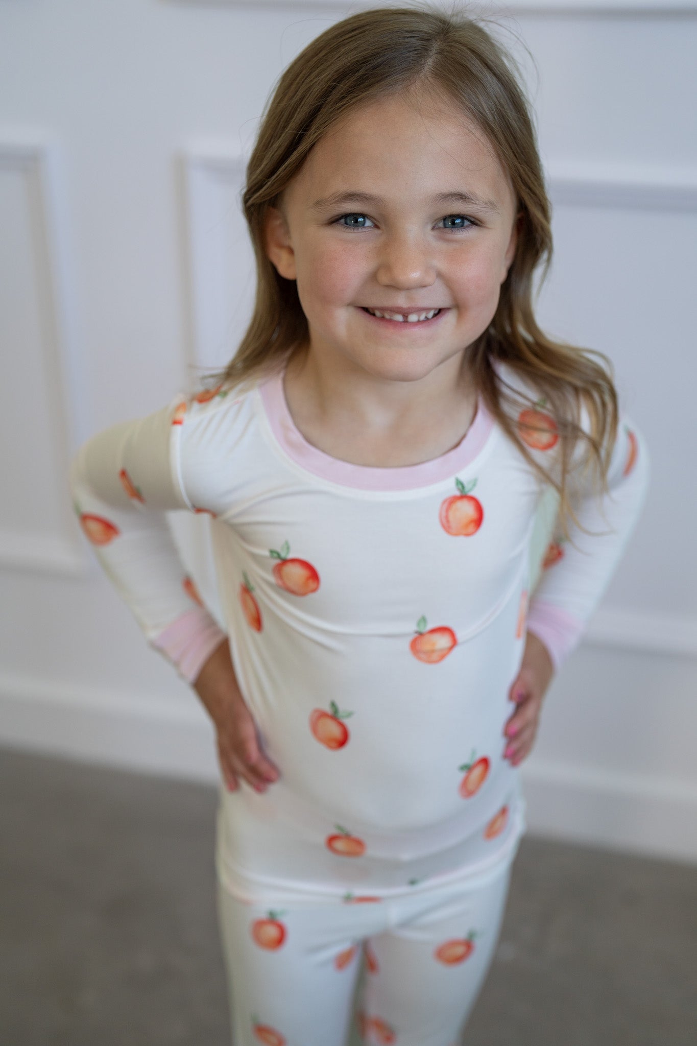 Get your little one ready for cozy nights in our Sweet Peach! Made from 95% bamboo viscose and 5% spandex, these jammies are unbelievably soft, breathable, and stretchy—designed to keep your child comfy without feeling too tight or too loose.