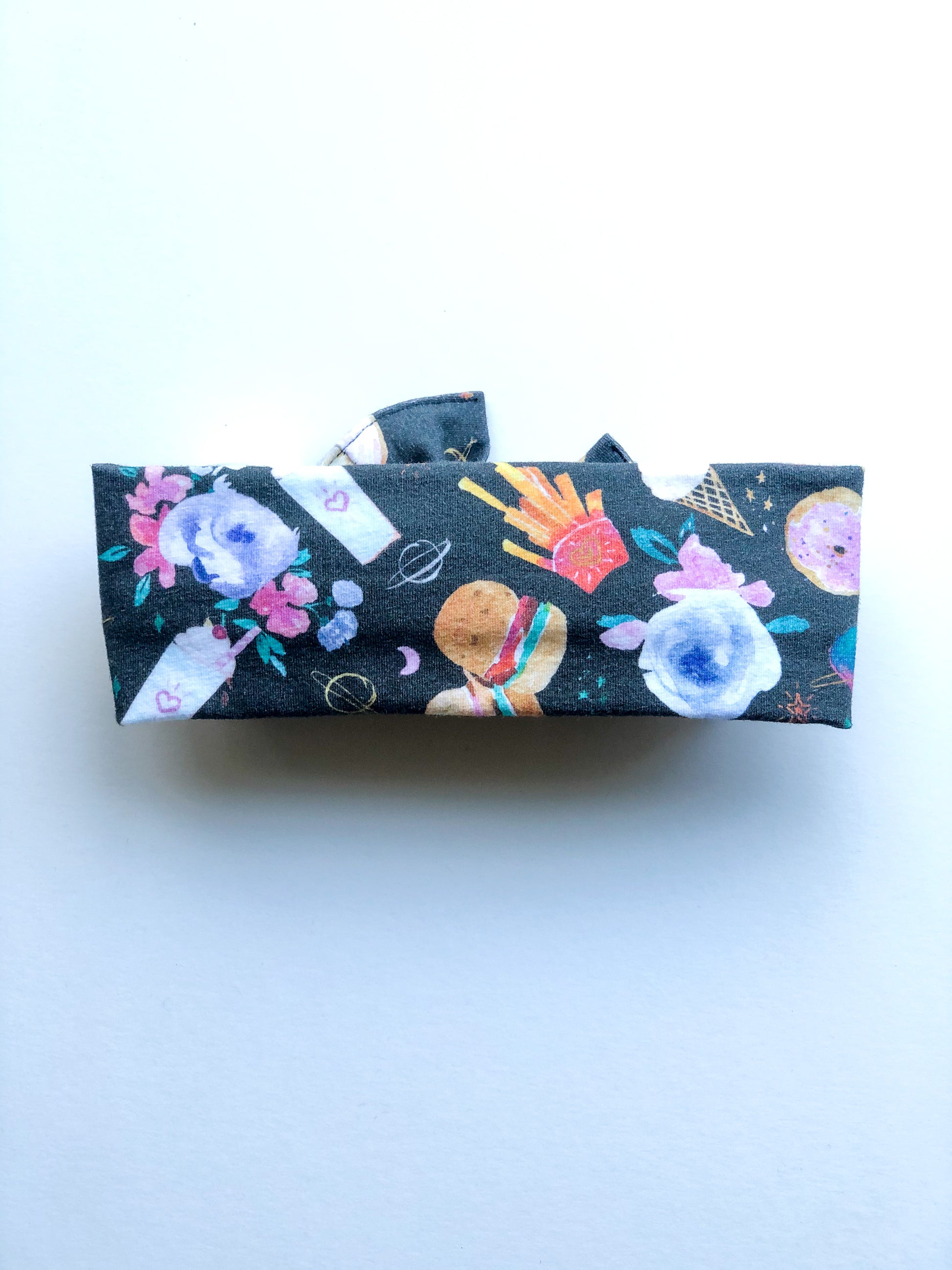This headwrap is a premium print. It is made from a high quality cotton blend material & holds structure very well.