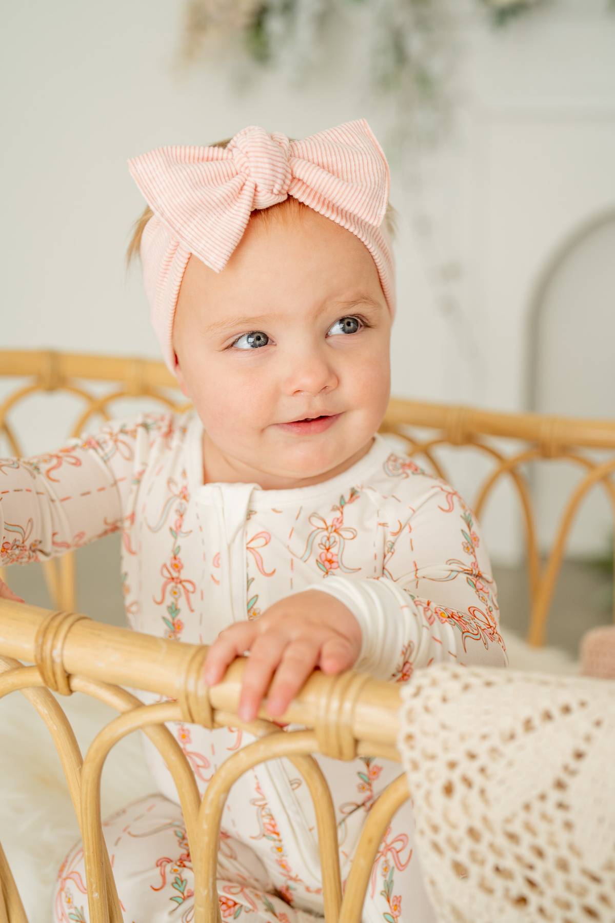 The beautiful springy, floral garland print, featuring dainty bows & delicate flowers adds a dreamy, whimsical touch to bedtime, while the lightweight, temperature-regulating fabric keeps them feeling just right all night long. Plus, they’re easy to wash, resistant to shrinking and fading, and made with safety in mind—no flame retardants or itchy tags here!
